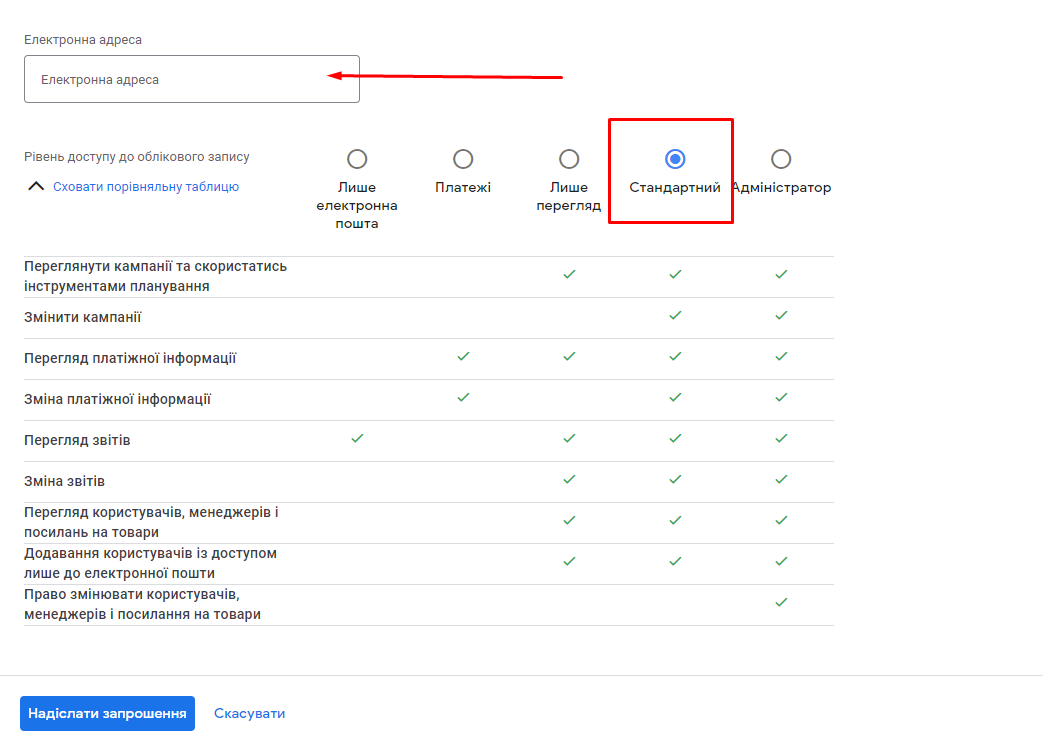 3. Вводимо пошту mistrakov.b@gmail.com, рівень та надсилаємо запрошення.