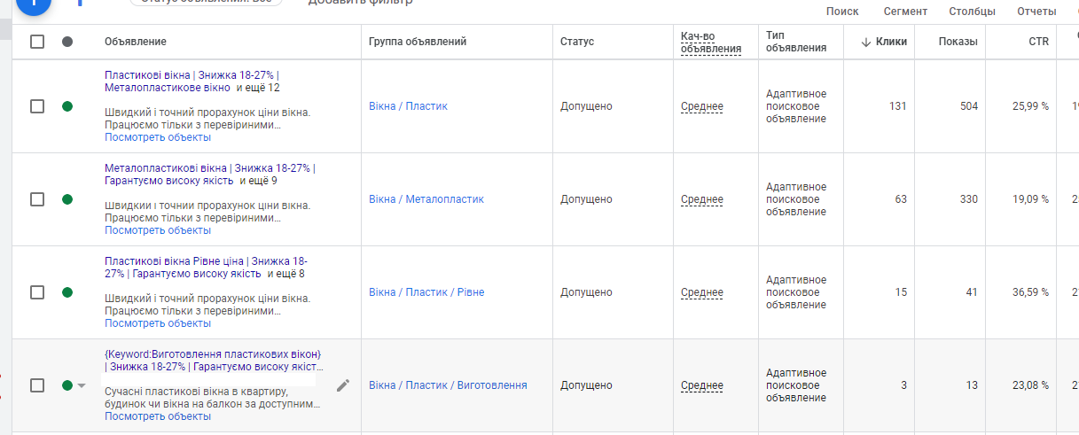 Контекстна реклама в Google Ads – це форма реклами, яка показується користувачам під час їхнього пошуку в Інтернеті. Вона базується на ключових словах, які користувачі вводять у пошукові рядки. Оскільки більшість людей шукають інформацію про ремонт та покупку вікон та дверей онлайн, контекстна реклама виявляється дуже ефективним інструментом для цієї галузі.