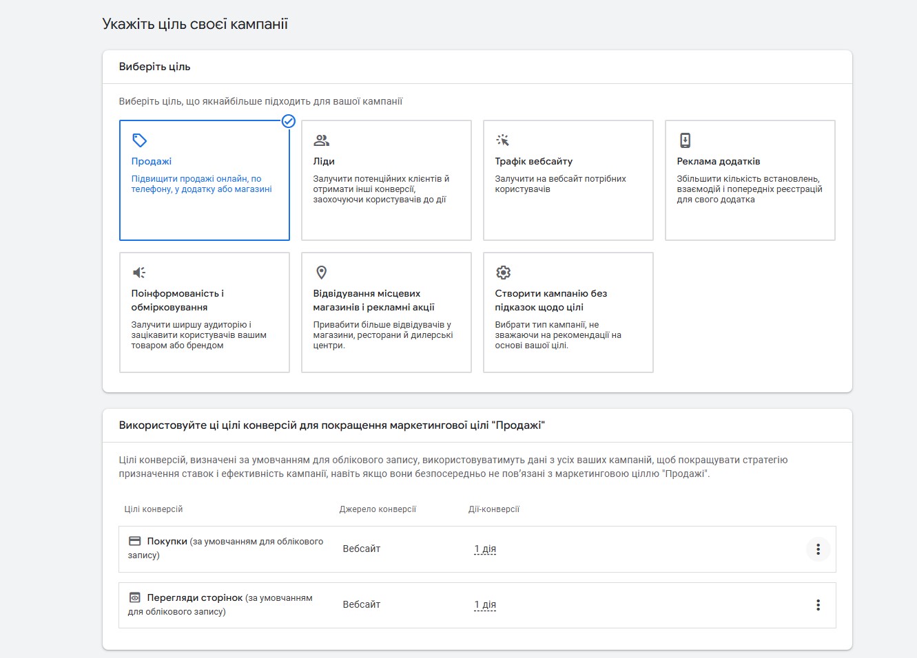 Для початку, відкрийте обліковий запис Google Ads і натисніть “Нова кампанія”. На етапі налаштування оберіть маркетингову мету, наприклад, “Продажі” або “Ліди”. Після цього вкажіть, що бажаєте використовувати динамічний ремаркетинг.