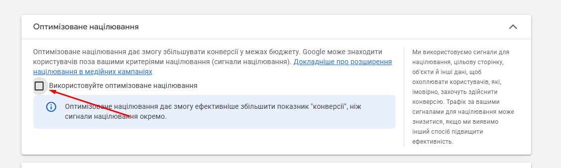 7. Прибираємо оптимізоване націлювання